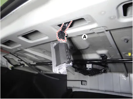 Disconnect the trunk room lamp connector (A).