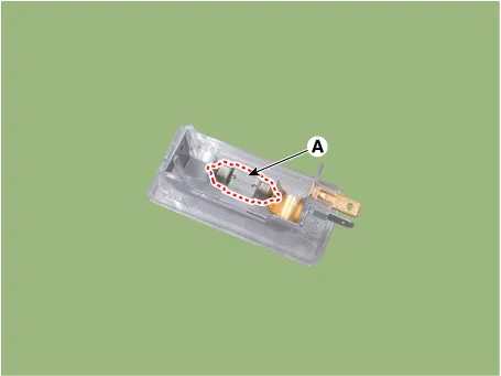 Repair procedures Removal 1. Disconnect the negative battery terminal. 2. Remove the lcense lamp (A) by pressing the hook.
