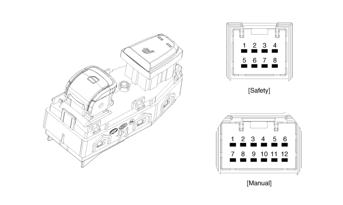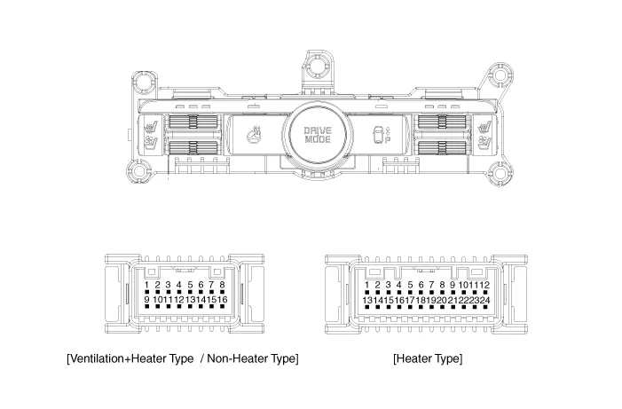 Schematic diagrams Connector and Terminal Function Pin Function Connector A Connector B 1 Driver heater ground (-) Driver blower speed (+) 2 Passenger heater ground (-) - 3 Driver cushion heater power (+) CAN (Low) 4 Driver back heater power (+) CAN (High) 5 Passenger cushion heater power (+) - 6 Passenger back heater power (+) LIN 7 ECU (Ground) Detent 8 ECU (Ground) IGN1 9 Driver blower speed 10 Passenger blower speed 11 Illumination (-) 12 Driver NTC (-) 13 Passenger NTC (-) 14 - 15 - 16 - 17 - 18 - 19 - 20 IGN2 21 - 22 Driver NTC (+) 23 Passenger NTC (+) 24 - Repair procedures Removal Ventilation Seat Unit 1.