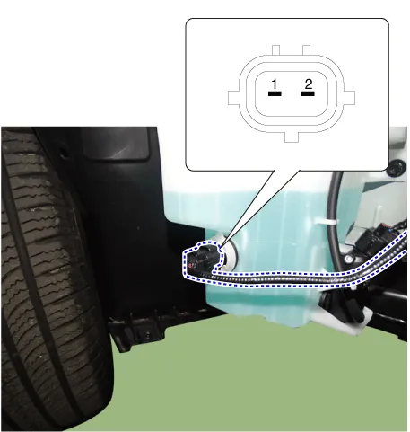 With the washer motor connected to the reservoir tank, fill the reservoir tank with water.