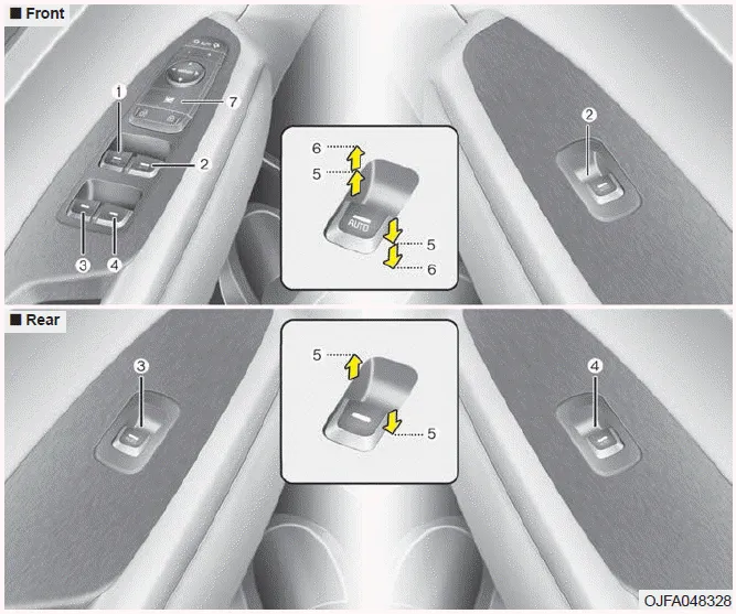 (6) Automatic power window up/down (Driver's and Passenger's window)
