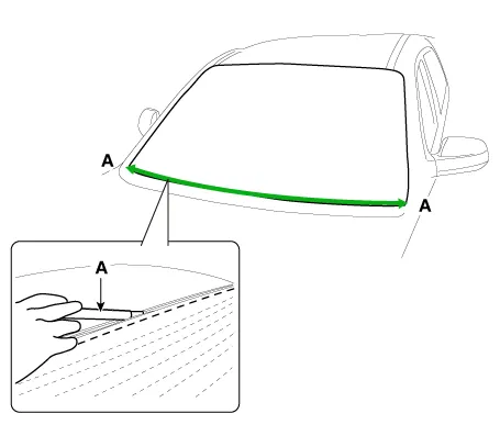 Using a knife, scrape the remaining sealant around the body panel leaving about 2mm-thick sealant (0.0079 in.) on the bonding surface. If installing a new windshield glass, make alignment marks on the windshield glass and the body.